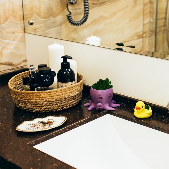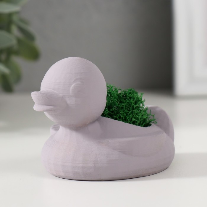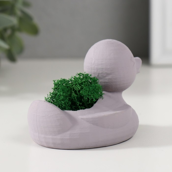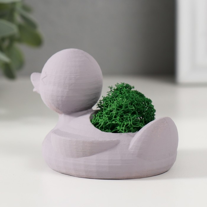 Кашпо бетонное "Утка" 6х8х5,5 см серая со мхом (мох зеленый стабилизированный)