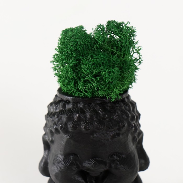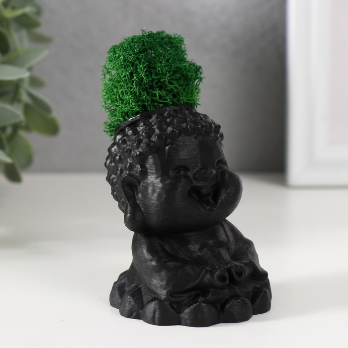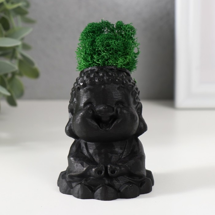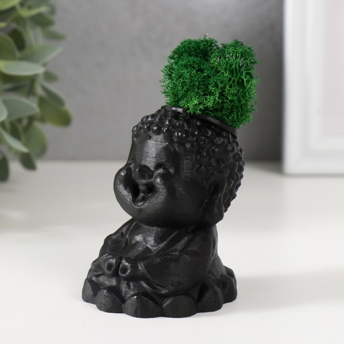 Кашпо бетонное "Будда" 5,5х6,5х7см черный матовый со мхом (мох зеленый стабилизированный)