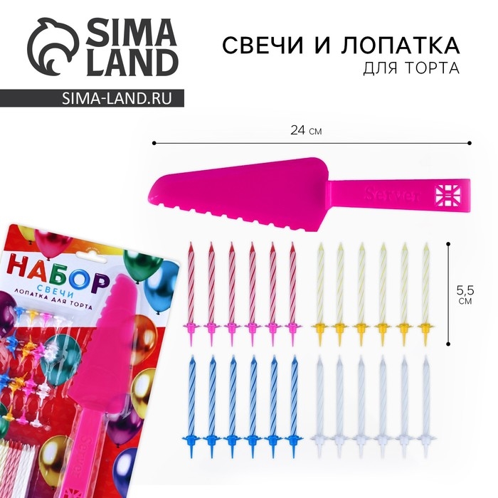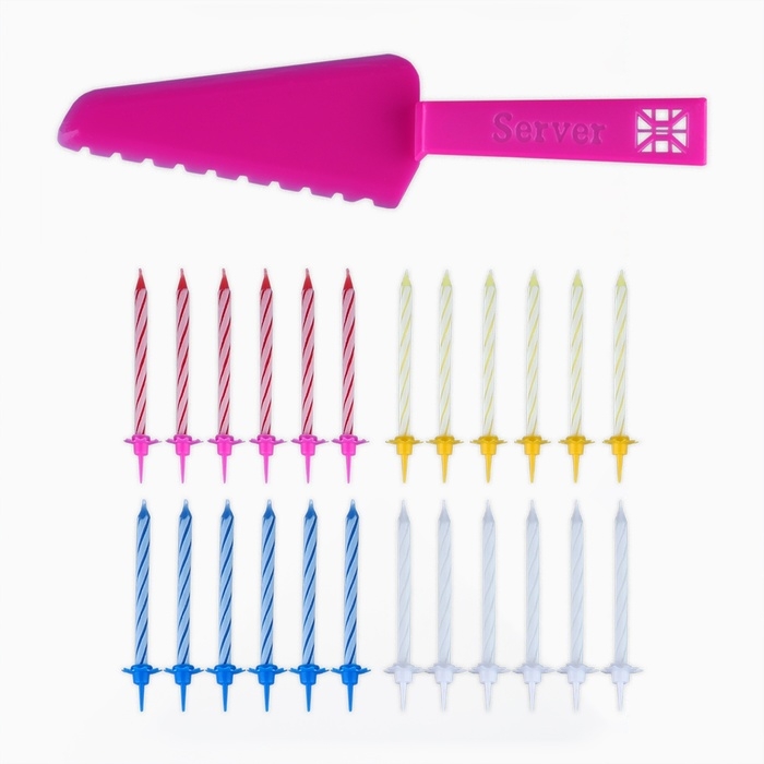 Свечи для торта в наборе с лопаткой для торта «С Днём Рождения», розовая лопатка.