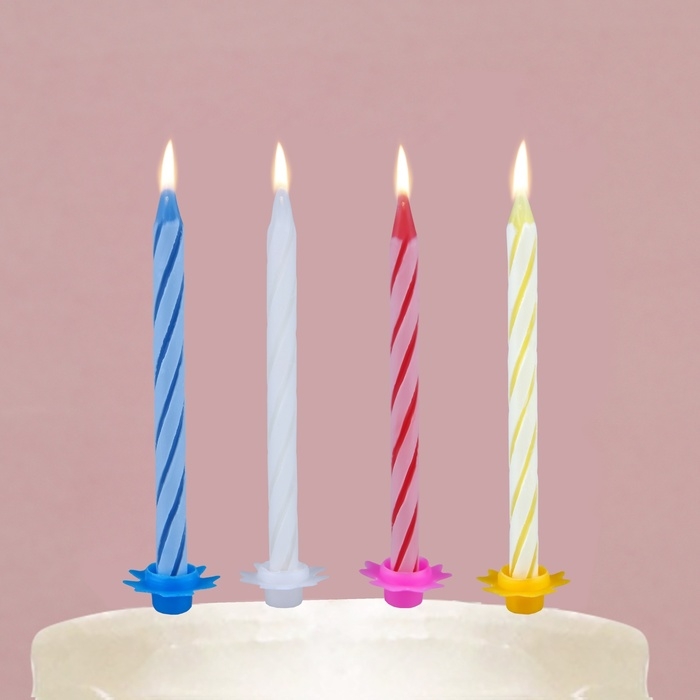 Свечи для торта на День рождения - неотъемлемая часть праздника. Украсьте угощение свечами, чтобы сделать особенный день в году ещё более ярким и незабываемым. Ведь задувание свечей вызывает бурные эмоции и у взрослых, и у детей, потому что в любом возрасте мы все мечтаем об исполнении желаний и для всех нас это один из самых трогательных и волшебных моментов. Яркие свечи украсят праздничный стол и создадут нужную атмосферу. Изготовлены из высокоочищенного пищевого парафина, который не влияет на вкусовые качества блюд, а удобная упаковка помогает сохранять свечи при длительном хранении и транспортировке.