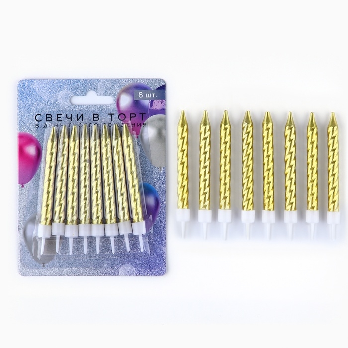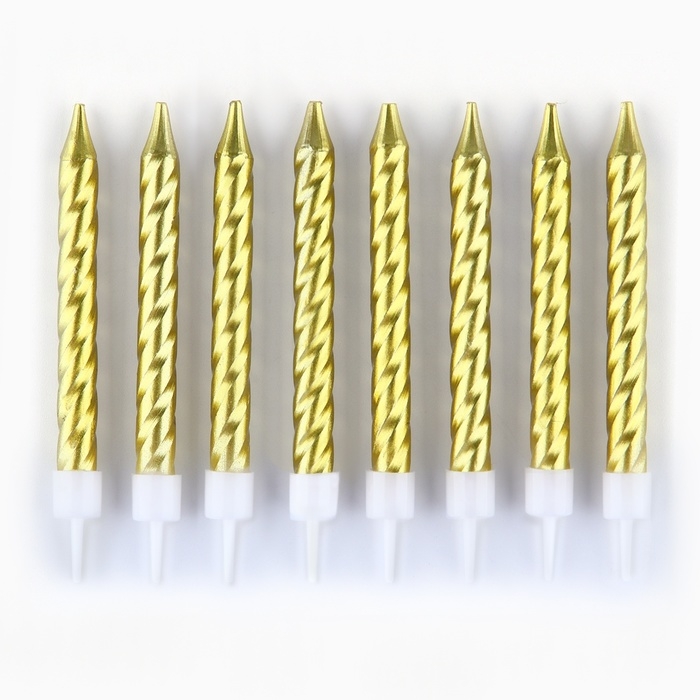 Свечи для торта, золото, 8 шт., 8,5 х 0,8 см