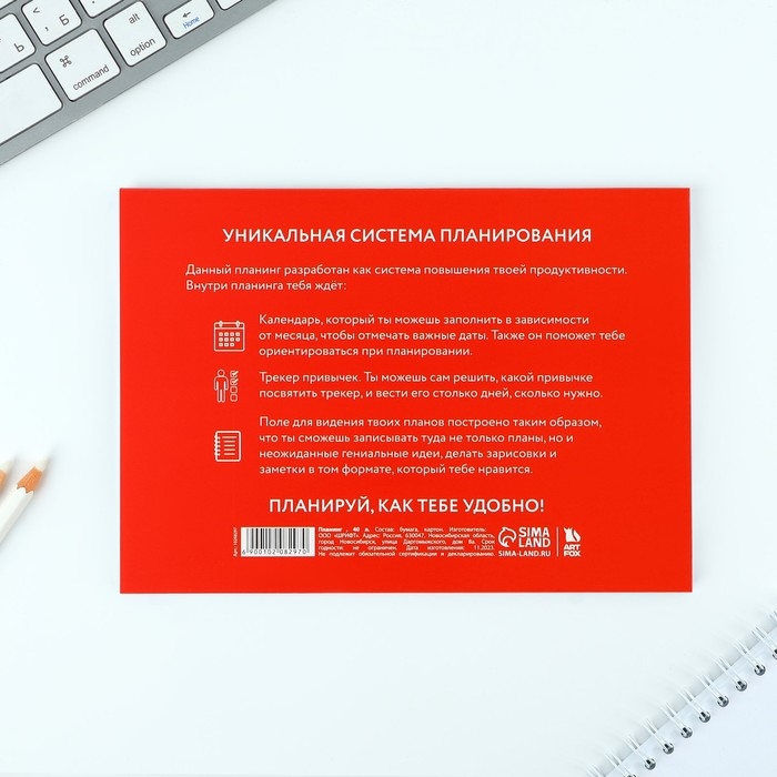 Планинг с отрывными листами А5, 40л. Мягкая обложка «Красный»