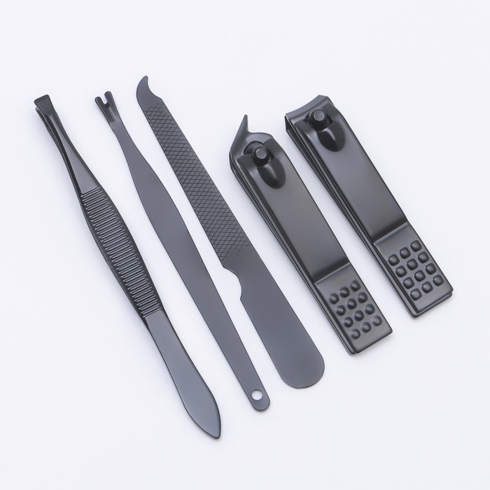 Набор маникюрный, 5 предметов, в футляре, цвет чёрный