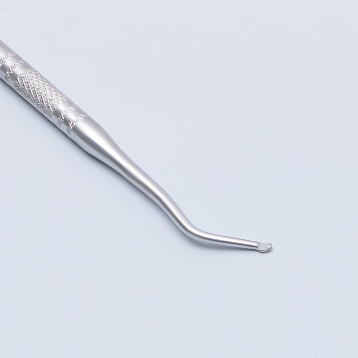Ребристая поверхность основания предотвращает скольжение в руке. Прекрасно поддевает кутикулу, а также помогает поддеть вросший ноготь, очистить ногти от загрязнений и подготовить к дальнейшим этапам маникюра и педикюра.