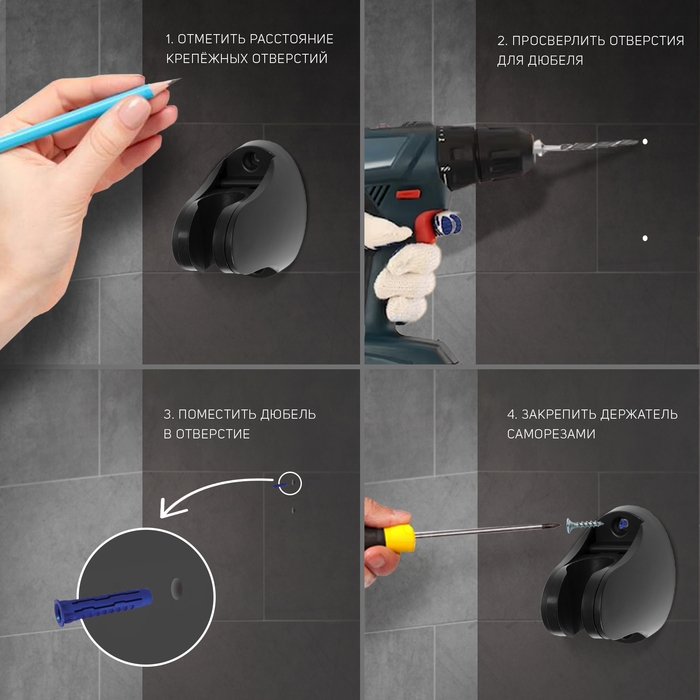 Держатель для душевой лейки ZEIN Z91, регулируемый, пластик, черный