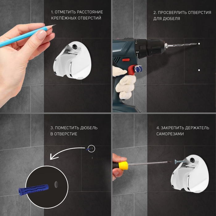 Держатель для душевой лейки ZEIN Z86, пластик, цвет хром