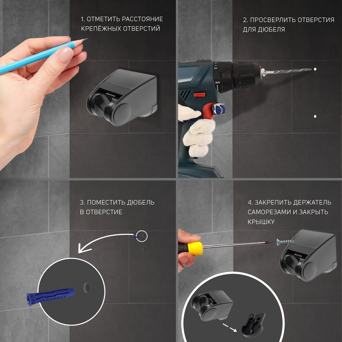 Держатель для душевой лейки ZEIN Z91, регулируемый, пластик, черный