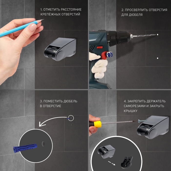 Держатель для душевой лейки ZEIN Z101, регулируемый, графит