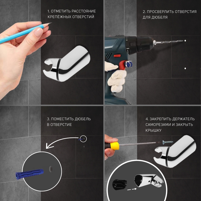 Держатель для душевой лейки ZEIN Z86, пластик, цвет хром