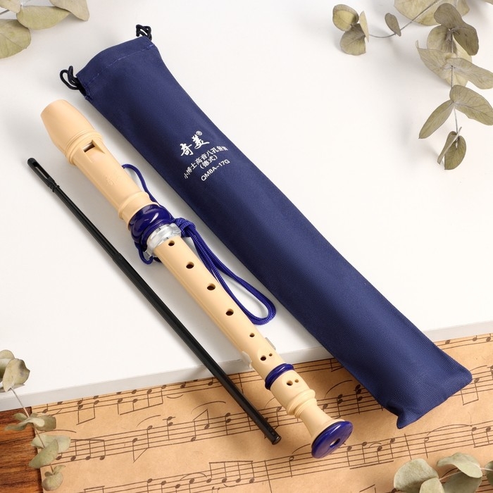 Блокфлейта Music Life, 8 отверстий, синий чехол, шомпол, 30 см