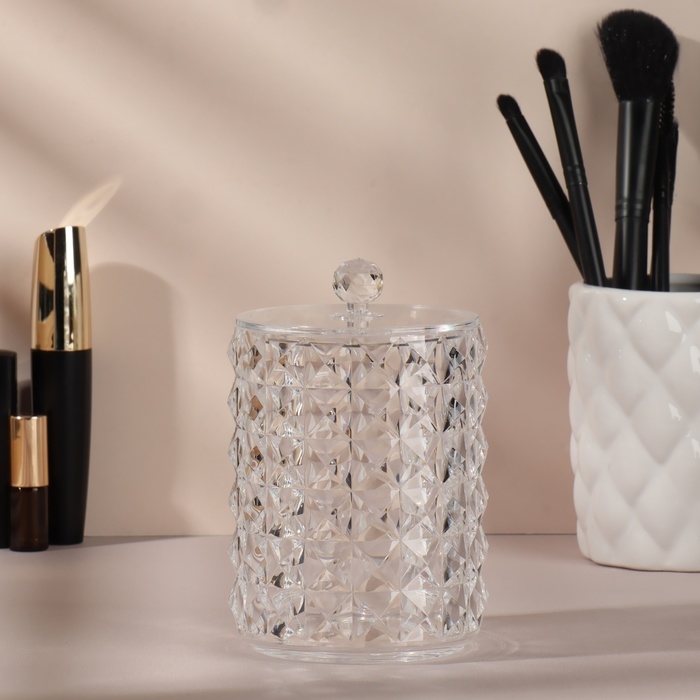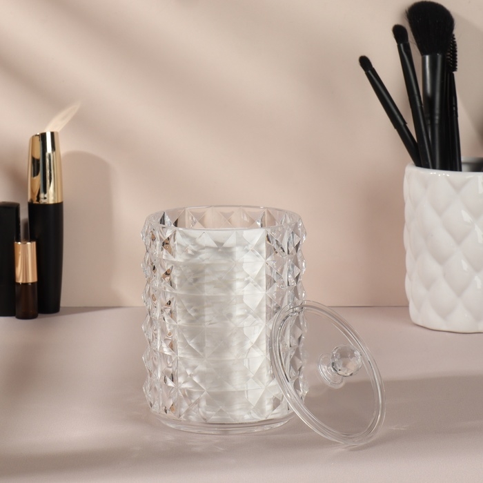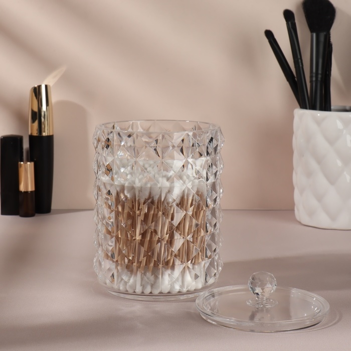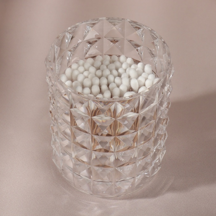 Органайзер для ватных палочек, с крышкой, d = 8 × 12,5 см, в картонной коробке, цвет прозрачный