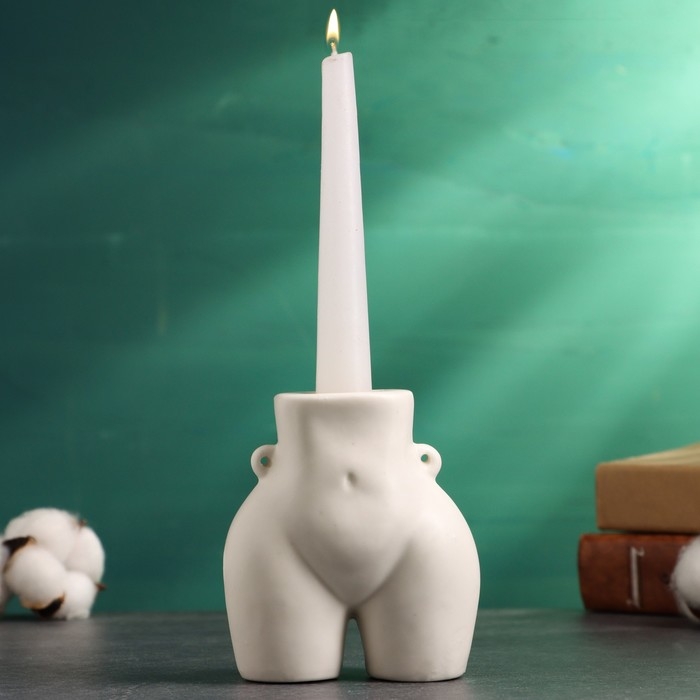 Подсвечник "Марта" белый глянец, 10х6х8см