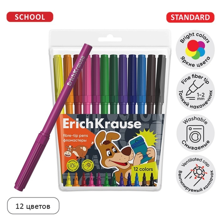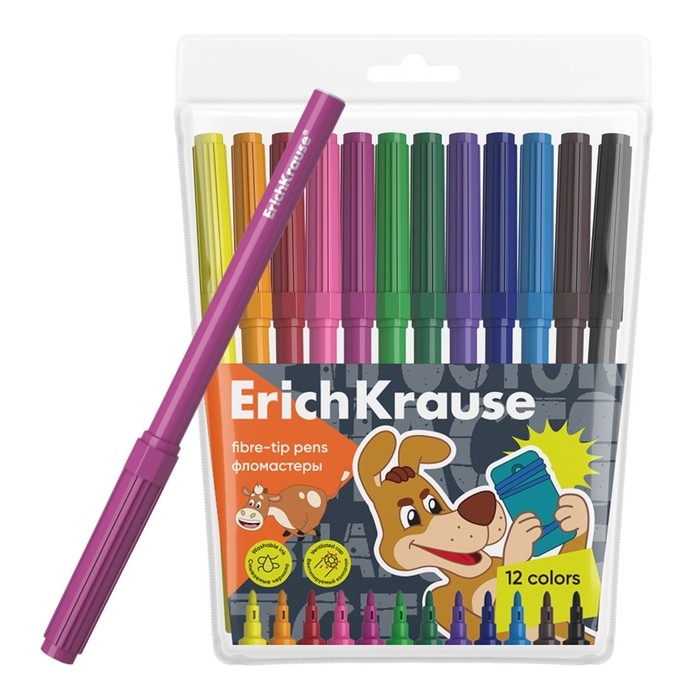 Фломастеры 12 цветов ErichKrause "Basic", на водной основ, вентилируемый колпачок