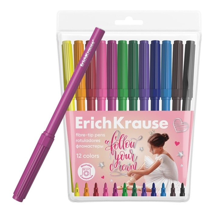 Фломастеры ErichKrause со смываемыми чернилами на водной основе. Идеально подходят как для рисования, так и для раскрашивания. Широкая палитра ярких цветов. Наконечник сохраняет форму при интенсивном использовании. Чернила на водной основе не имеют запаха, отстирываются с большинства тканей и поверхностей. Герметичный корпус из полипропилена не образует острых сколов при поломке и предотвращает высыхание чернил. Фломастеры снабжены вентилируемыми колпачками, окрашенными в тон корпуса.
