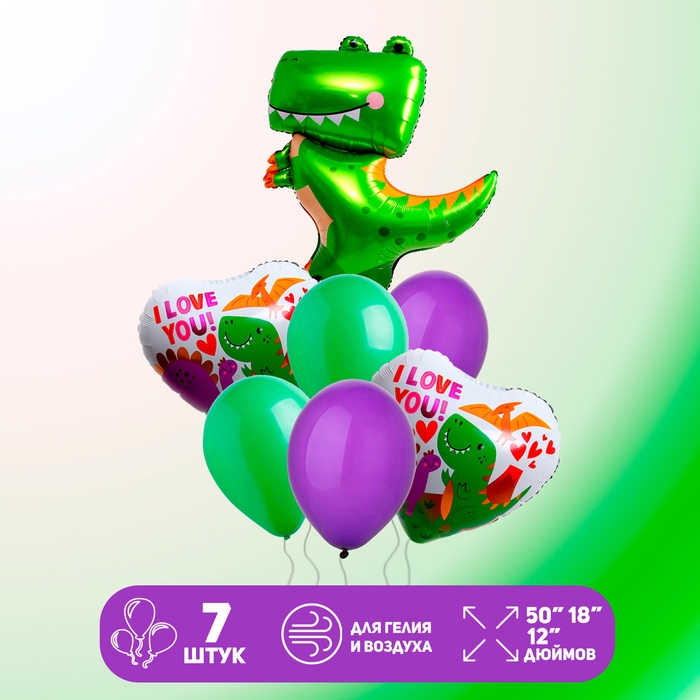 Набор шаров «Динозаврик», латекс, фольга, 7 шт.