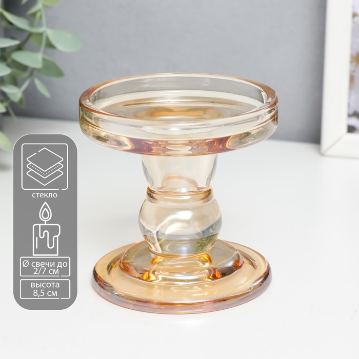 Подсвечник стекло на 1 свечу "Подиум" карамель 8,5х8,5х8,5 см