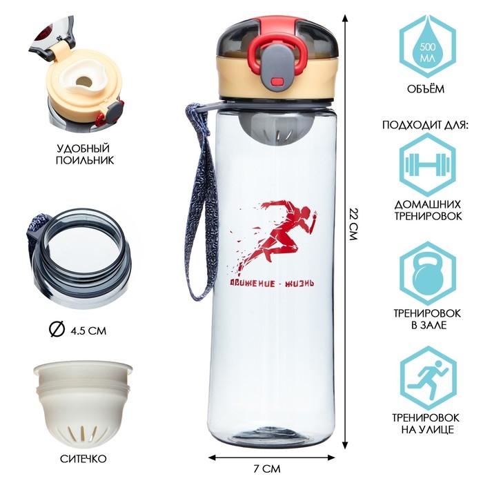 Бутылка для воды, 500 мл, "Движение - жизнь", с поильником