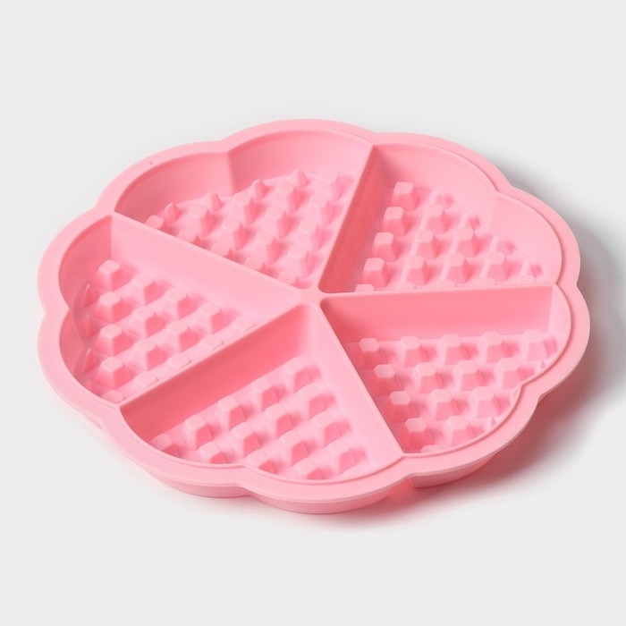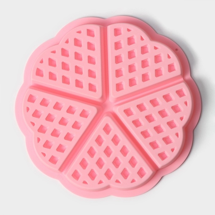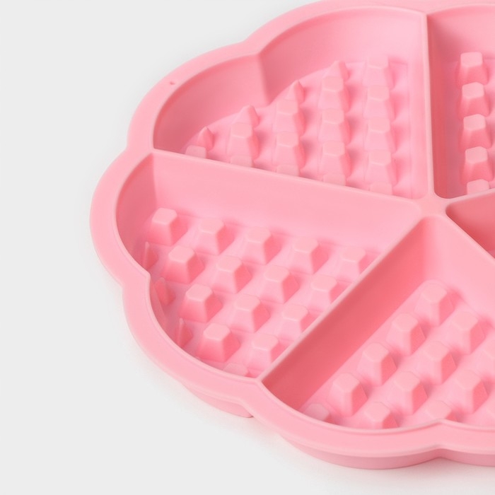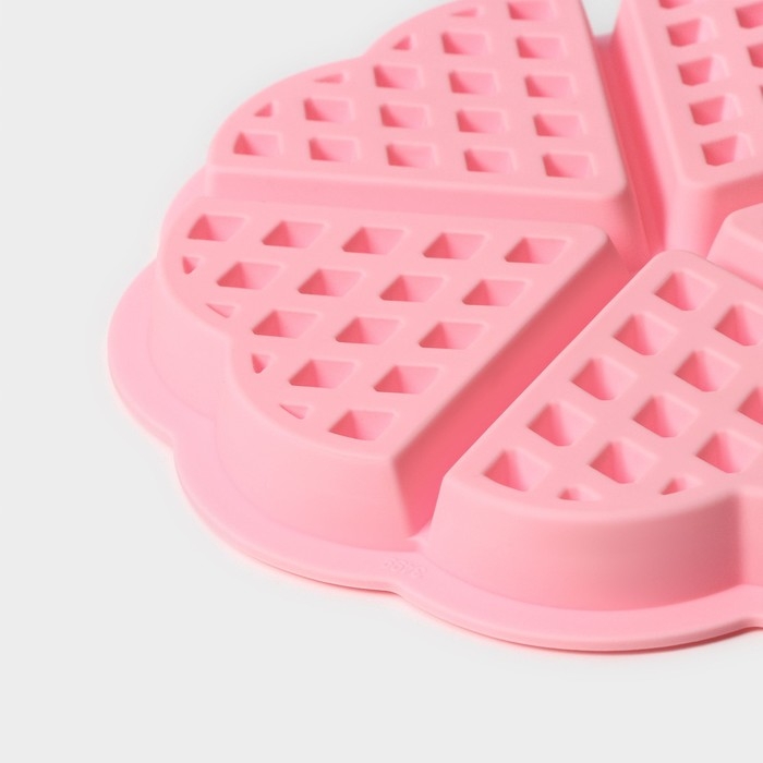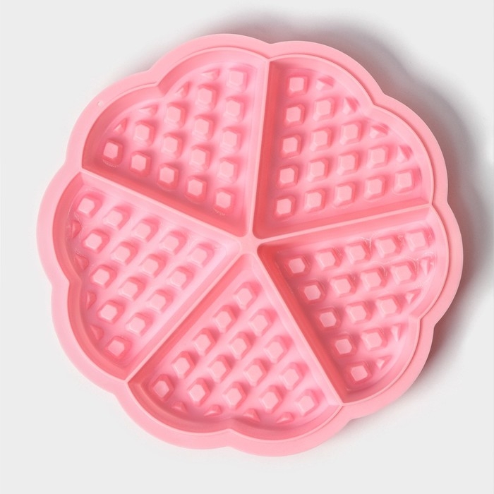 Форма для выпечки Доляна «Сладости. Венские вафли сердце», силикон, 21×2 см, 5 ячеек, цвет розовый