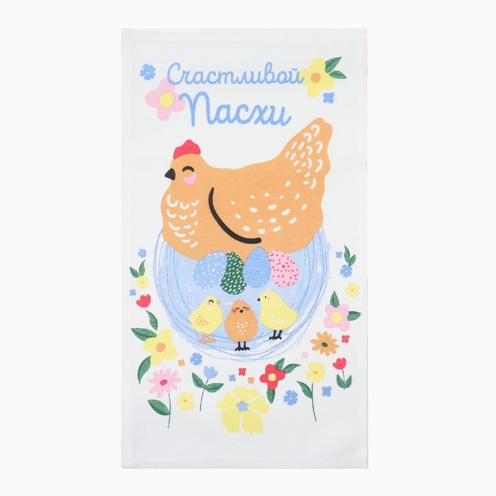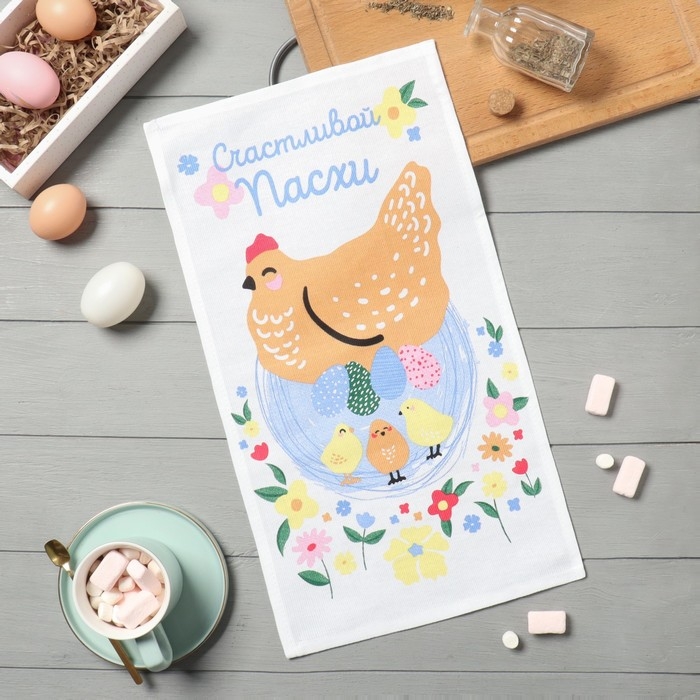 Полотенце кухонные Доляна "Счастливой пасхи" 28х46 см, рогожка, 100% хл, 160г/м2