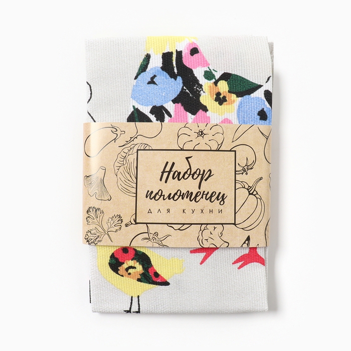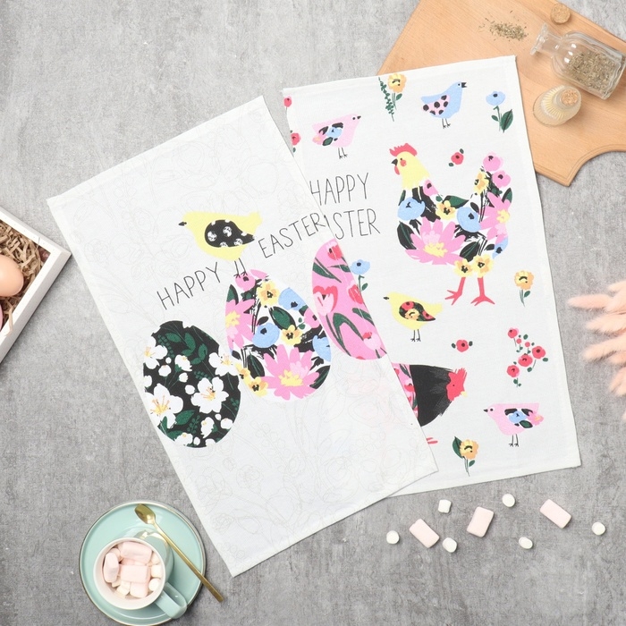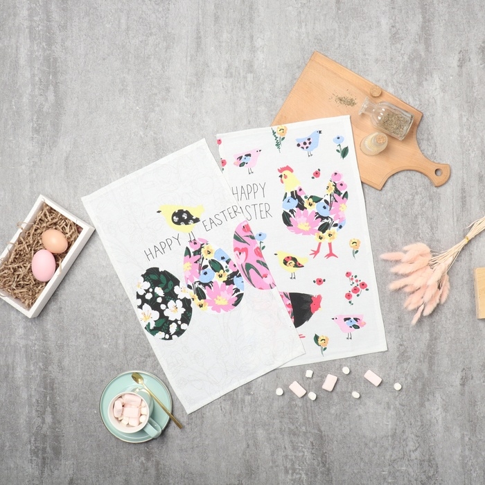 Набор кухонных полотенец Доляна "Happy easter" 2 шт, 28х46 см, рогожка, 100% хлопок, 160г/м2