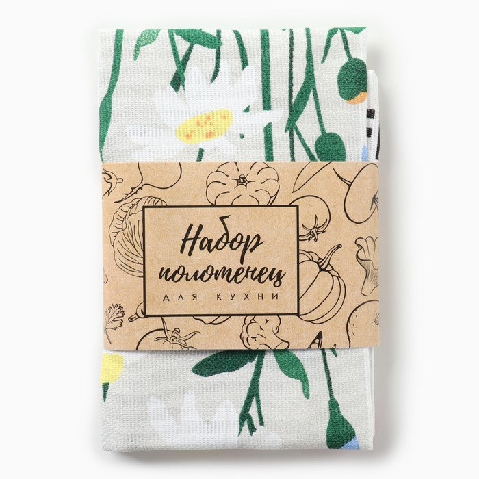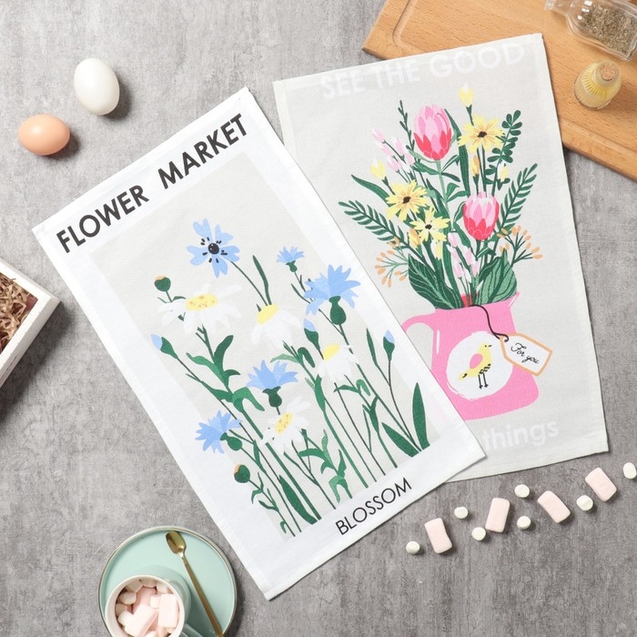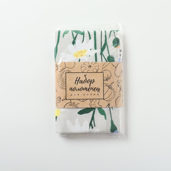 Набор кухонных полотенец Доляна "Букет" 2 шт, 28х46 см, рогожка, 100% хлопок, 160г/м2