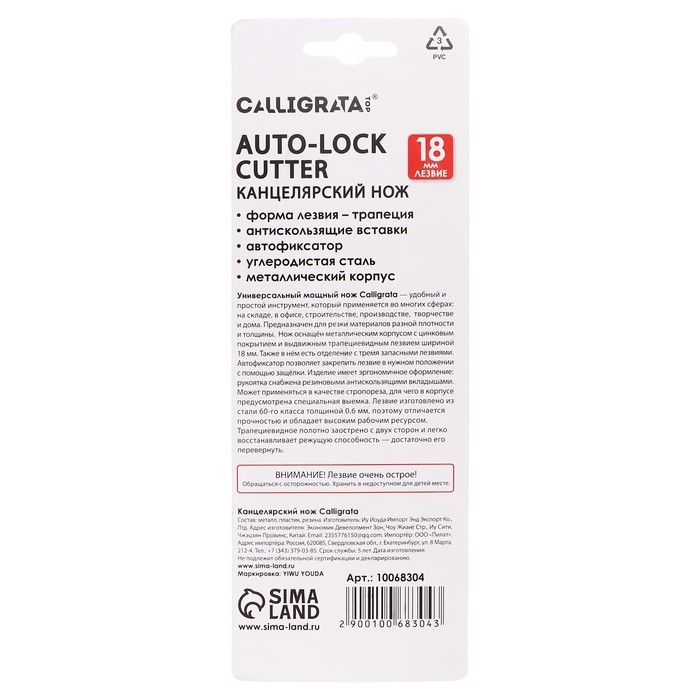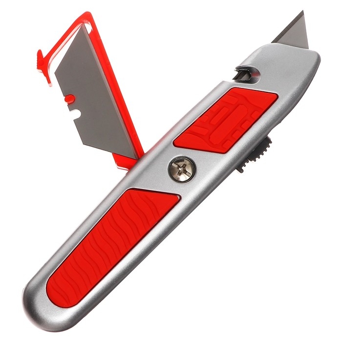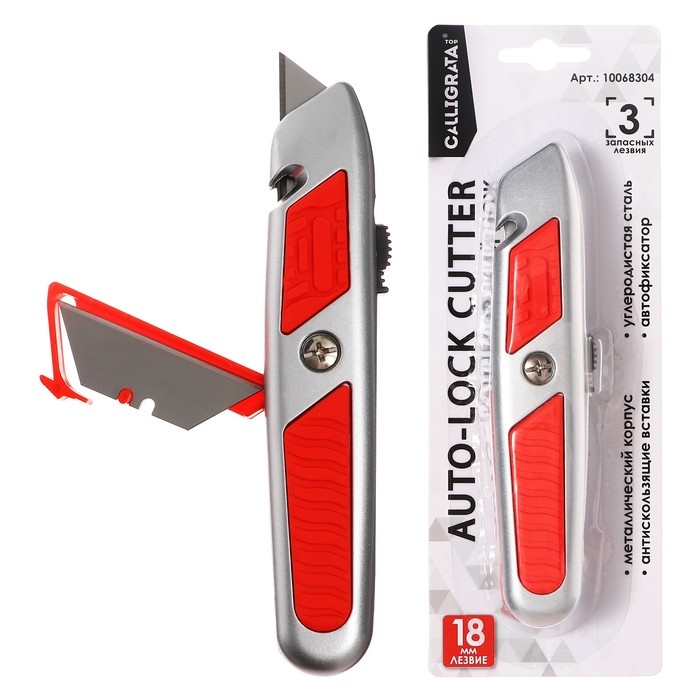 Нож универсальный трапециевидный 18мм, фиксатор, 3 штуки запасных лезвий, Zinc-alloy, TOP