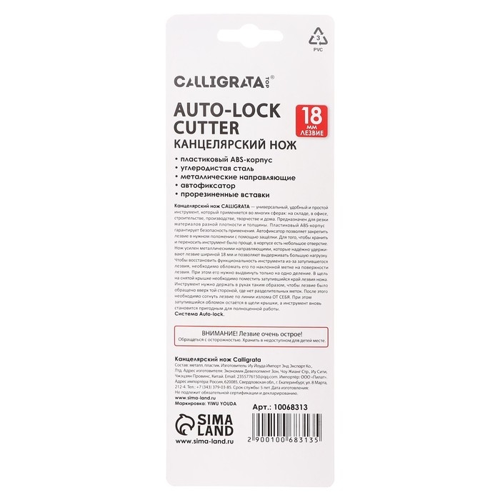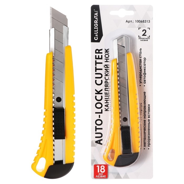 Нож канцелярский 18мм, пластиковый, 2 штуки запасных лезвий, TOP