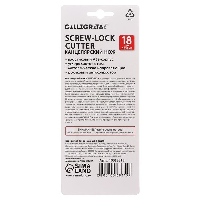 Нож канцелярский 18 мм, пластиковый, с роликовым фиксатором, TOP