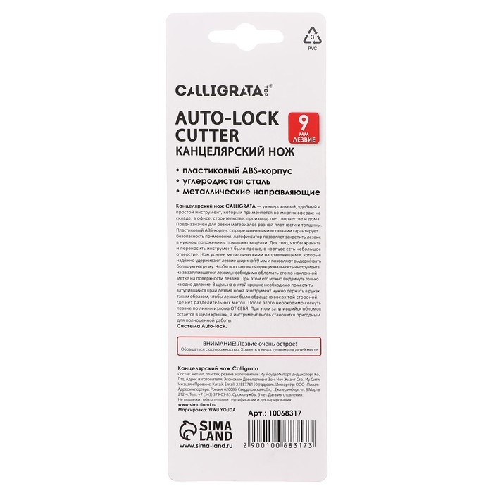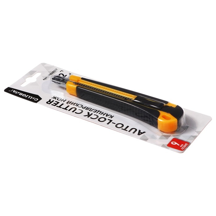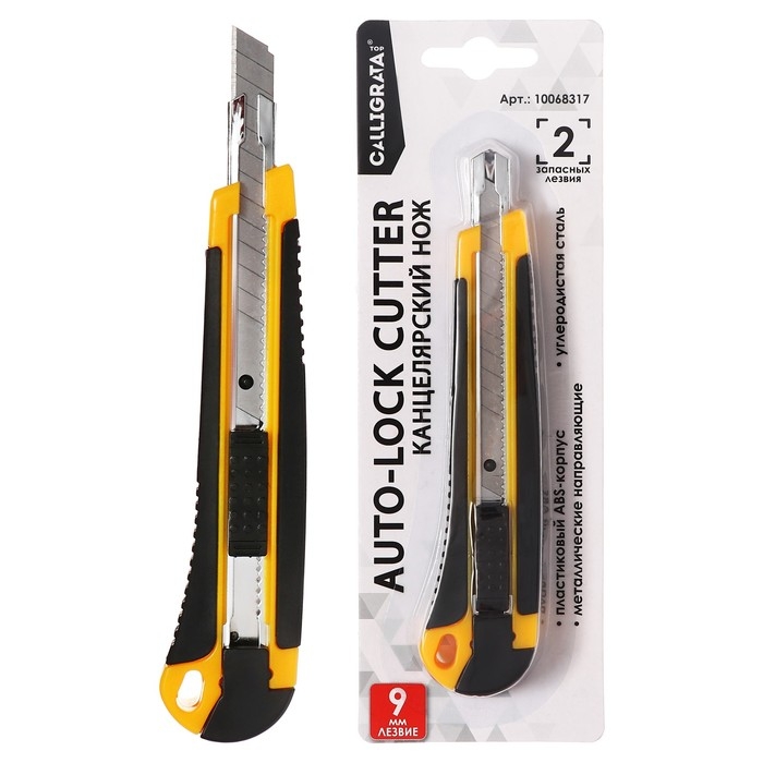 Нож канцелярский 9мм, пластиковый, фиксатор, 2 штуки лезвий, TOP