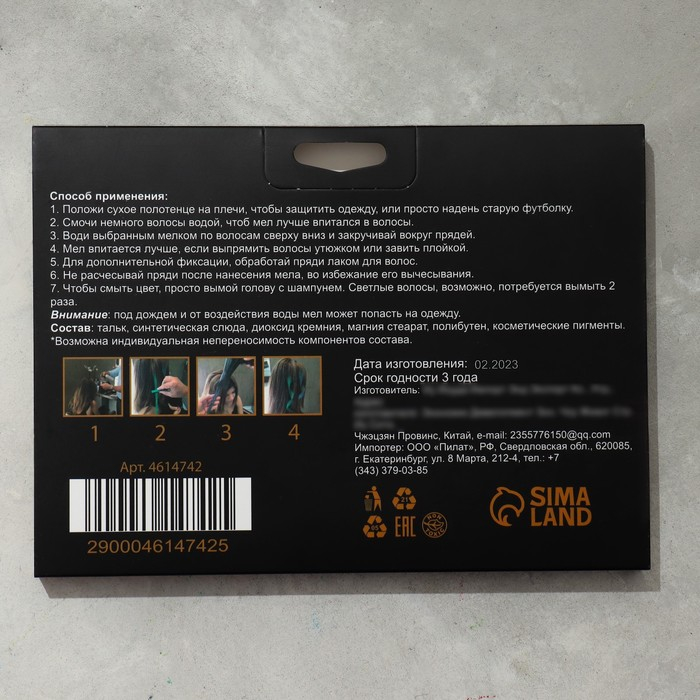 Набор мелков для волос, 4 цвета