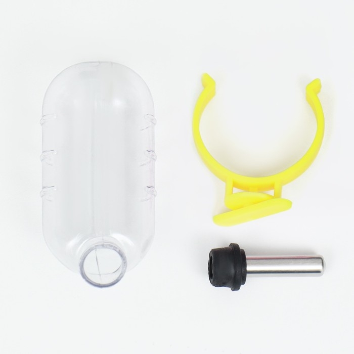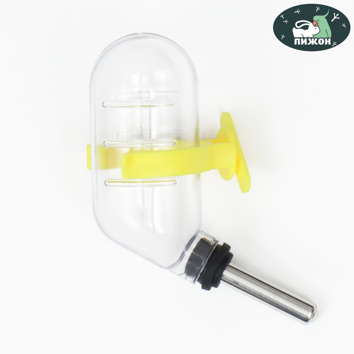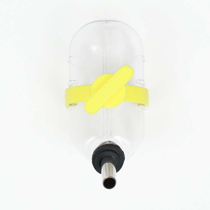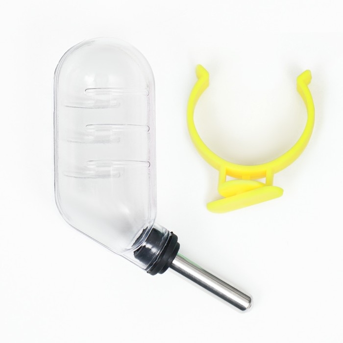 Поилка для грызунов с металлическим носиком, 60 мл, прозрачная с жёлтым креплением