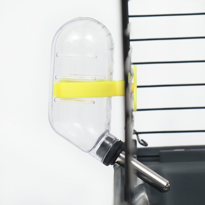 - Жёлтое крепление: яркий и заметный цвет крепления не только украшает клетку, но и облегчает установку и снятие поилки.