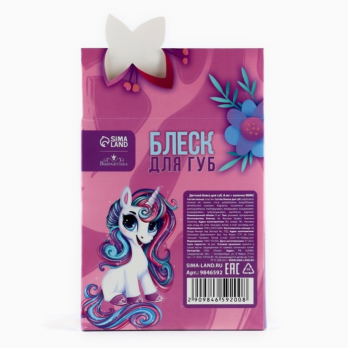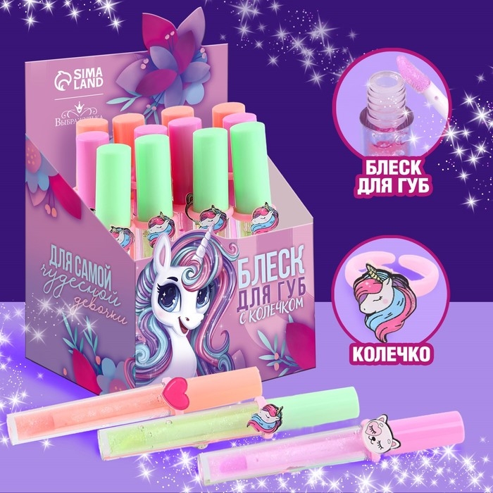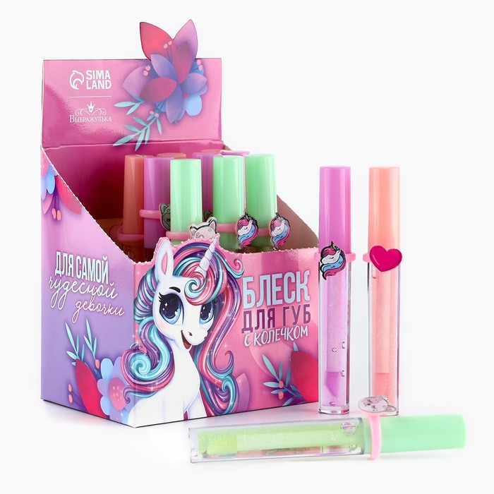 Детский блеск для губ «Единорожка» с колечком, 8 мл, МИКС