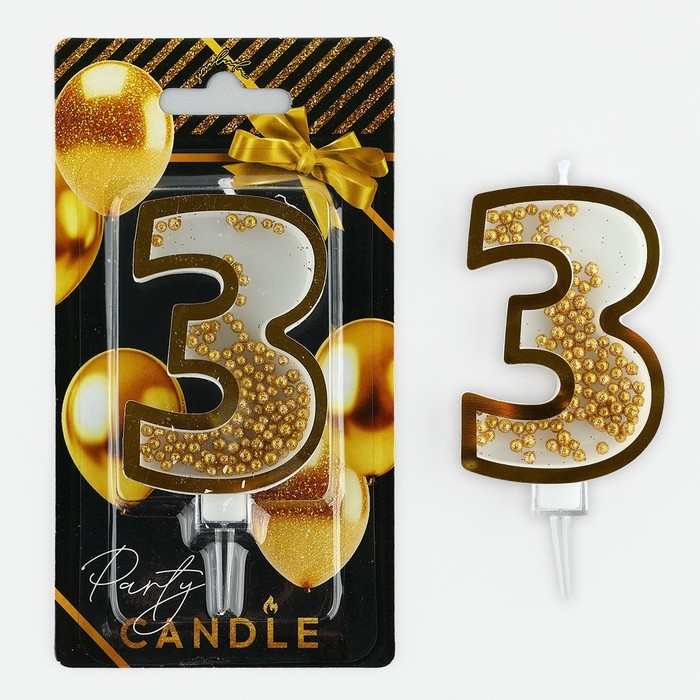 Свеча для торта, цифра с шейкером «3», 9,5 х 4 см