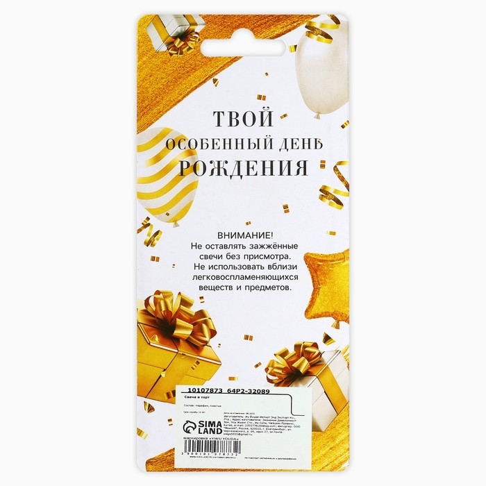 Свечи для торта на День рождения - неотъемлемая часть праздника. Украсьте угощение свечами, чтобы сделать особенный день в году ещё более ярким и незабываемым. Ведь задувание свечей вызывает бурные эмоции и у взрослых, и у детей, потому что в любом возрасте мы все мечтаем об исполнении желаний и для всех нас это один из самых трогательных и волшебных моментов. Яркие свечи украсят праздничный стол и создадут нужную атмосферу. Изготовлены из высокоочищенного пищевого парафина, который не влияет на вкусовые качества блюд, а удобная упаковка помогает сохранять свечи при длительном хранении и транспортировке.