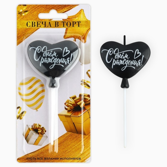 Свеча для торта «С днем рождения» чёрная, 5,5 х 12 см