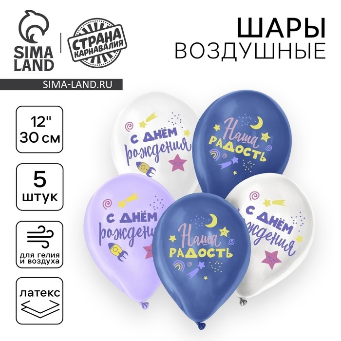 Воздушный шар латексный 12" «Наша радость», 5 шт.