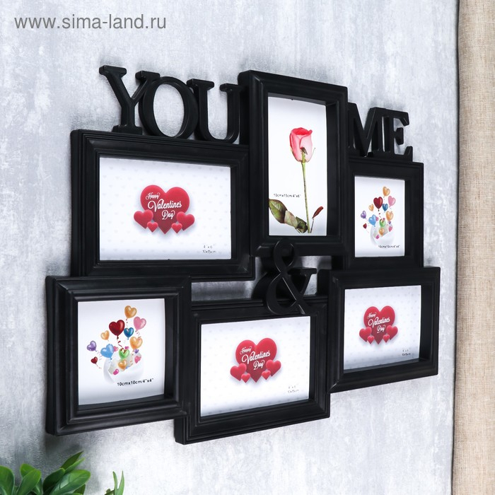 Фоторамка пластик на 6 фото 10х10, 10х15 см "Ты и я" чёрная 35х47 см