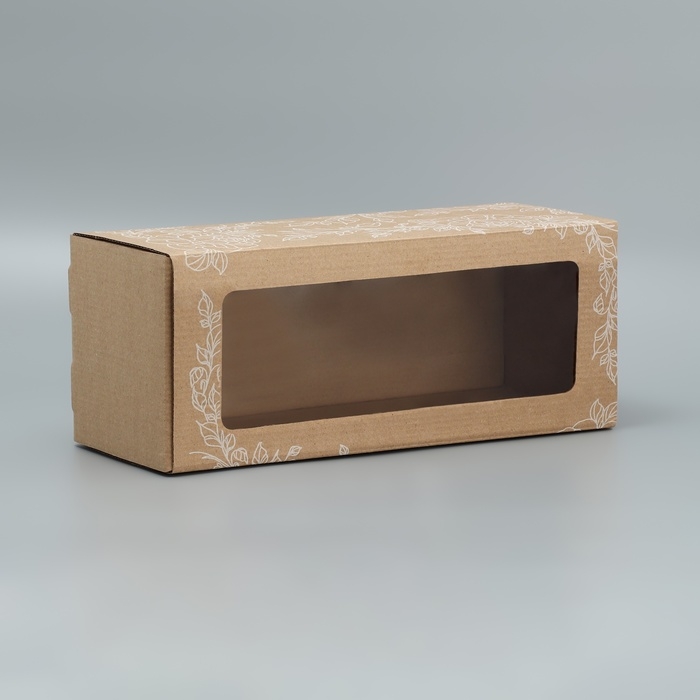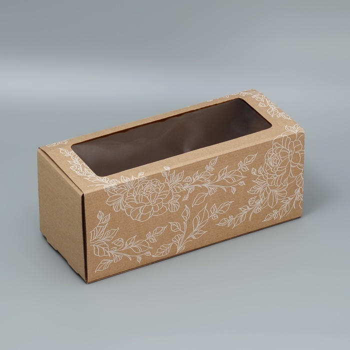 Коробка подарочная складная с PVC-окном, упаковка, «Цветы », 14 х 35 х 14 см