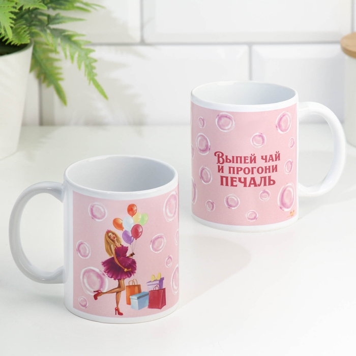 Кружка сублимация "Выпей чай и прогони печаль!" 320 мл, с нанесением