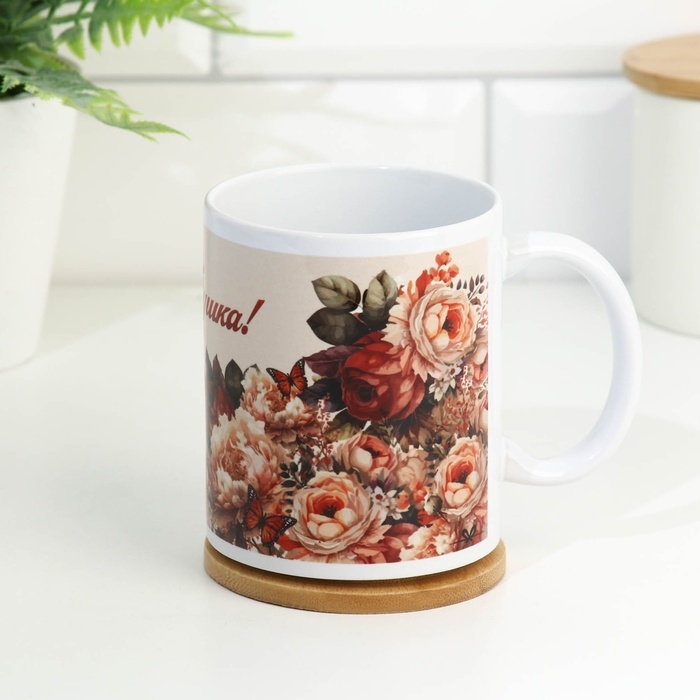 Кружка изготовлена из керамики. Рисунок нанесён методом сублимации, при котором краска проникает в верхний слой изделия, поэтому изображение получается стойким.