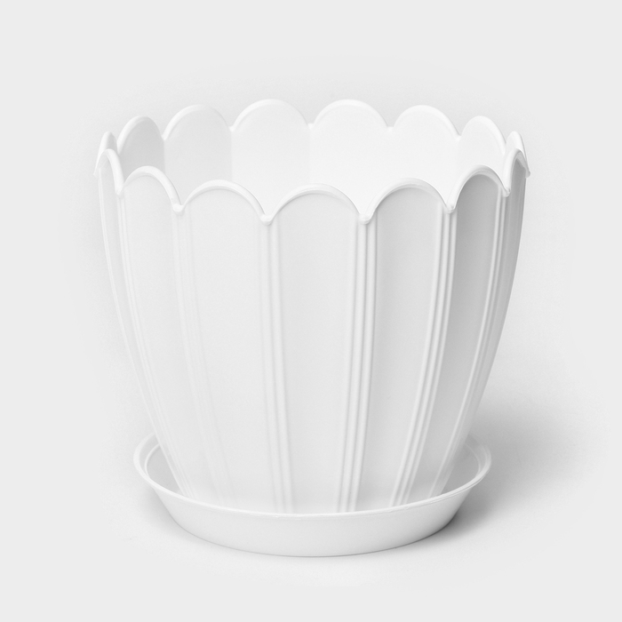 Горшок для цветов с поддоном «Хризантема», 0,6 л, d=11 см, h=9,5 см, цвет белый