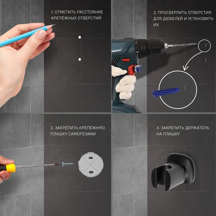 Держатель для душевой лейки ZEIN Z91, регулируемый, пластик, черный