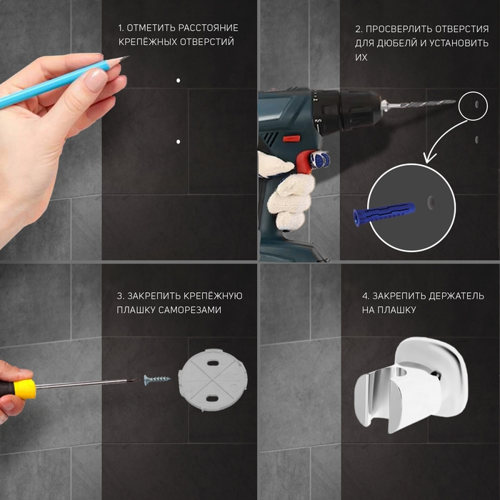 Держатель для душевой лейки ZEIN Z86, пластик, цвет хром