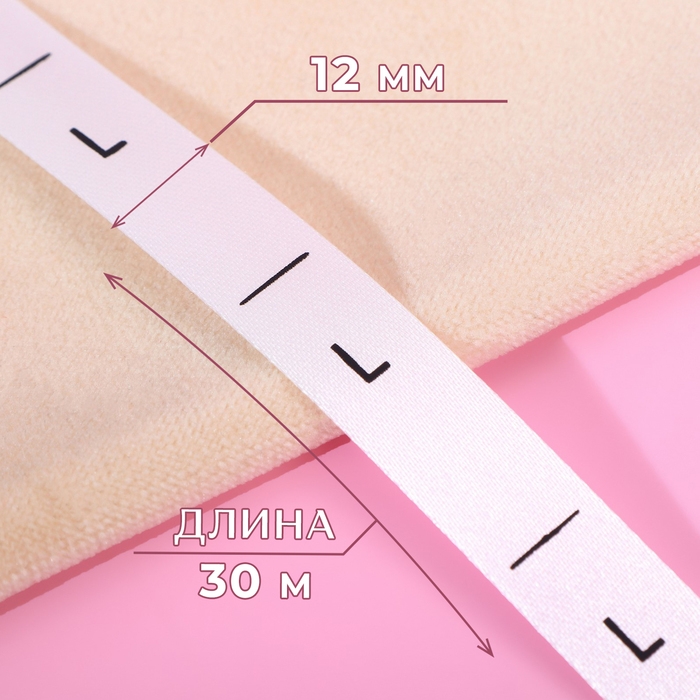 Размерник сатиновый, «L», 1000 шт, 12 мм, 30 м, цвет белый