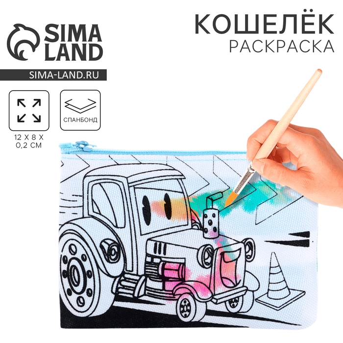 Кошелёк прямоугольный текстильный "Трактор", 12*8 см