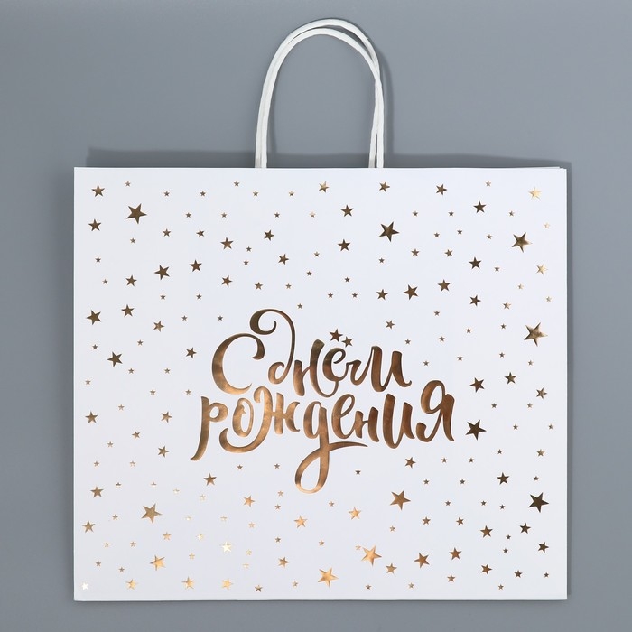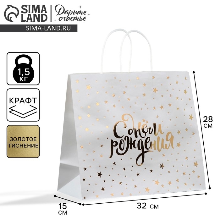 Пакет подарочный крафтовый, упаковка, «С днём рождения», 32 х 28 х 15 см