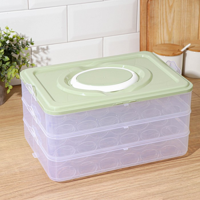 Как сэкономить место в холодильнике и избавиться от лишнего шума? Приобрести наш контейнер для хранения яиц в холодильнике. Органайзер для холодильника имеет 3 уровеня, общей ёмкостью – 72 яица.