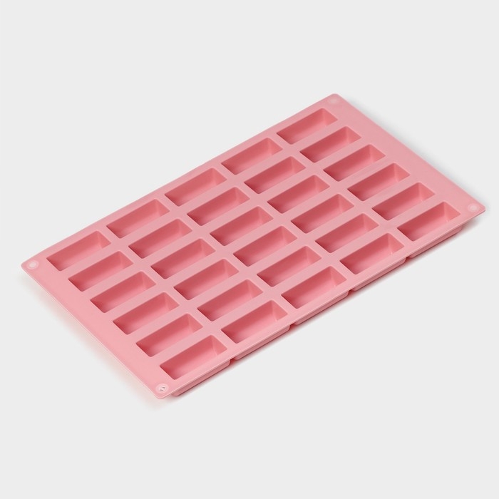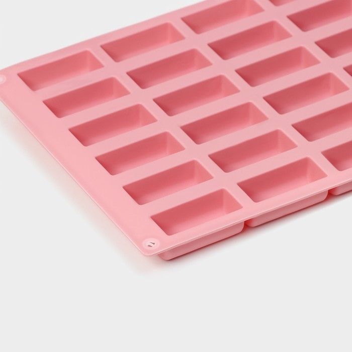 Форма для конфет и шоколада Доляна «Батончик», силикон, 28×17,5×2 см, 30 ячеек (4,3×1,7 см), цвет розовый
