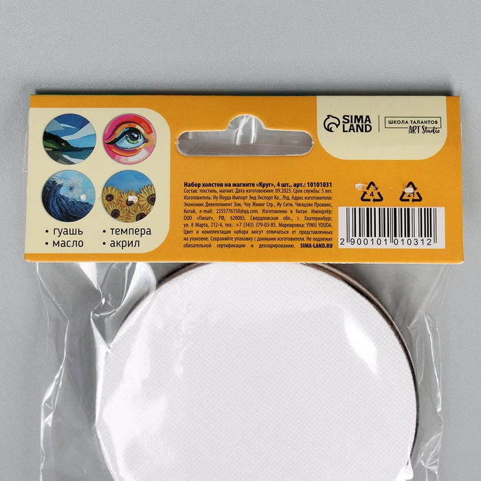 Набор холстов на магните «Круг», 7,5 см, 4 шт